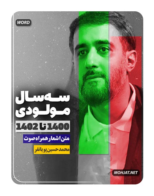 دانلود تمام مولودی های کربلایی محمدحسین پویانفر به صورت کامل از سال ۱۴۰۰ تا سال ۱۴۰۲ شامل متن اشعار مولودی همراه دانلود فایلهای صوتی به صورت یکجا در قالب فایل زیپ. مجموعهای بی نظیر از مولودی های محمد حسین پویانفر در تمام جشن ها و اعیاد طول سال. تایپ و انتشار اختصاصی از فروشگاه اینترنتی مهجه. برای مشاهده جدیدترین آثار به صفحه اصلی مراجعه کنید.