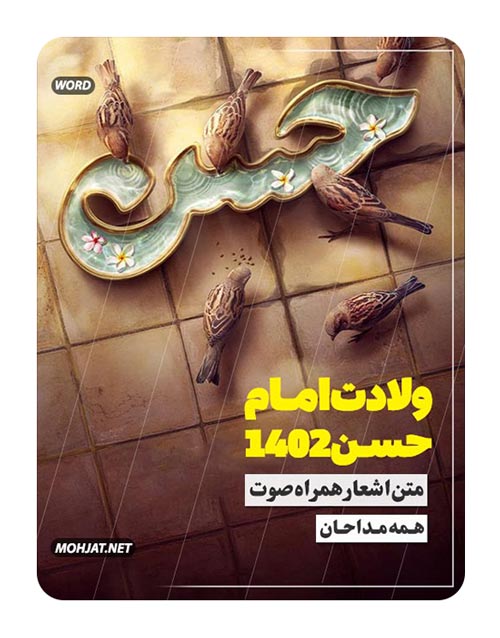 دانلود بستهی متن اشعار مولودی ولادت امام حسن ۱۴۰۲ همه مداحان شامل حاج منصور ارضی حاج محمدرضا بذری سید مجید بنی فاطمه کربلایی مسعود پیرایش کربلایی سجاد محمدی کربلایی پیام کیانی محمدحسین حدادیان حاج مهدی سلحشور حاج مهدی رسولی حاج محمدرضا طاهری کربلایی حسین طاهری حاج امیر کرمانشاهی حاج محمود کریمی سیدرضا نریمانی سید محمدرضا نوشه ور کربلایی حسن عطایی همراه دانلود فایلهای صوتی به صورت یکجا در قالب فایل زیپ. مجموعهای بی نظیر از شعر و سبکهای اجرا شده. تایپ و انتشار اختصاصی از فروشگاه اینترنتی مهجه. برای مشاهده جدیدترین آثار به صفحه اصلی مراجعه کنید.