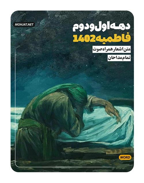 دانلود بستهی متن اشعار فاطمیه ۱۴۰۲ همه مداحان شامل حاج محمد رضا بذری, حاج محمدرضا طاهری, کربلایی حسین طاهری, حاج محمود کریمی, حاج منصور ارضی, حاج حسین سیب سرخی, حاج مهدی سلحشور, کربلایی پیام کیانی [گلچین], کربلایی سجاد محمدی [گلچین], حاج امیر کرمانشاهی [گلچین], سید مجید بنی فاطمه, سید مهدی حسینی, کربلایی محمدحسین حدادیان, حاج مهدی رسولی [گلچین], سید رضا نریمانی [گلچین], کربلایی حسن عطایی [گلچین], کربلایی حسین ستوده [گلچین], کربلایی حنیف طاهری [گلچین], کربلایی وحید شکری [گلچین], کربلایی محمدحسین پویانفر [گلچین], سید محمدرضا نوشه ور [گلچین] همراه دانلود فایلهای صوتی به صورت یکجا در قالب فایل زیپ. مجموعهای بی نظیر از شعر و سبکهای اجرا شده. تایپ و انتشار اختصاصی از فروشگاه اینترنتی مهجه. برای مشاهده جدیدترین آثار به صفحه اصلی مراجعه کنید.